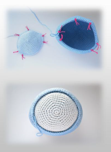 (11) 8 sc; {formation of the crown: pr; 6 sc; etc}; 44 PRS (62)