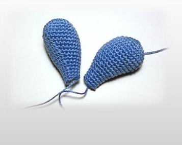 Finish knitting, cut the thread, fasten, leaving tail for sewing. Fill the part with filler.